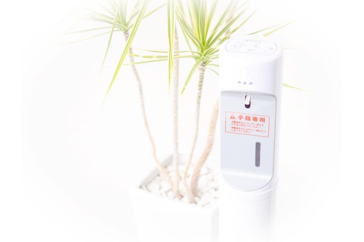 お客さまにご安心いただき、ご来店いただくため、入店すぐに自動消毒器を設置しました。スタッフも出入りのたびに、手指消毒を徹底しています。